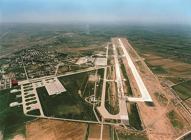 (1996年經(jīng)過(guò)機(jī)場(chǎng)改擴(kuò)建二期工程修建后的太原機(jī)場(chǎng)飛行區(qū)鳥(niǎo)瞰)