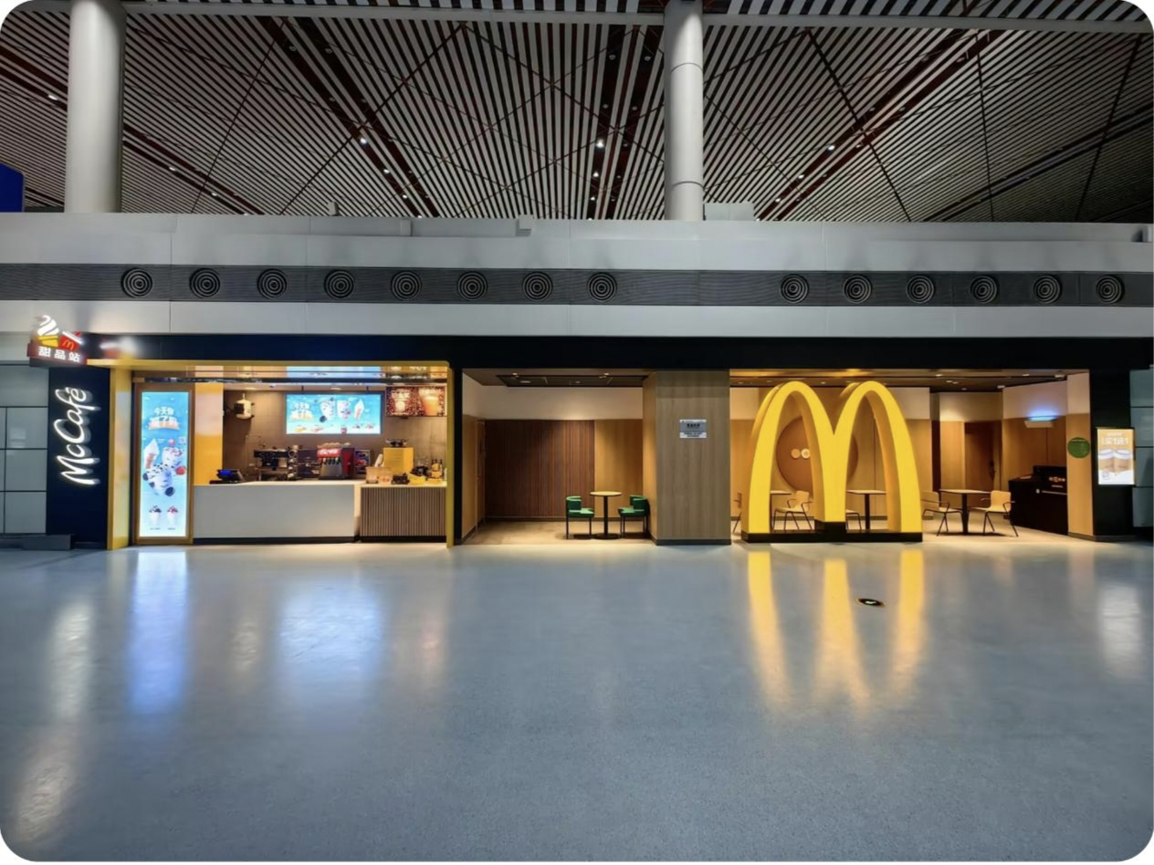 (麥當勞主食店,位于T2航站樓7號登機口對面)